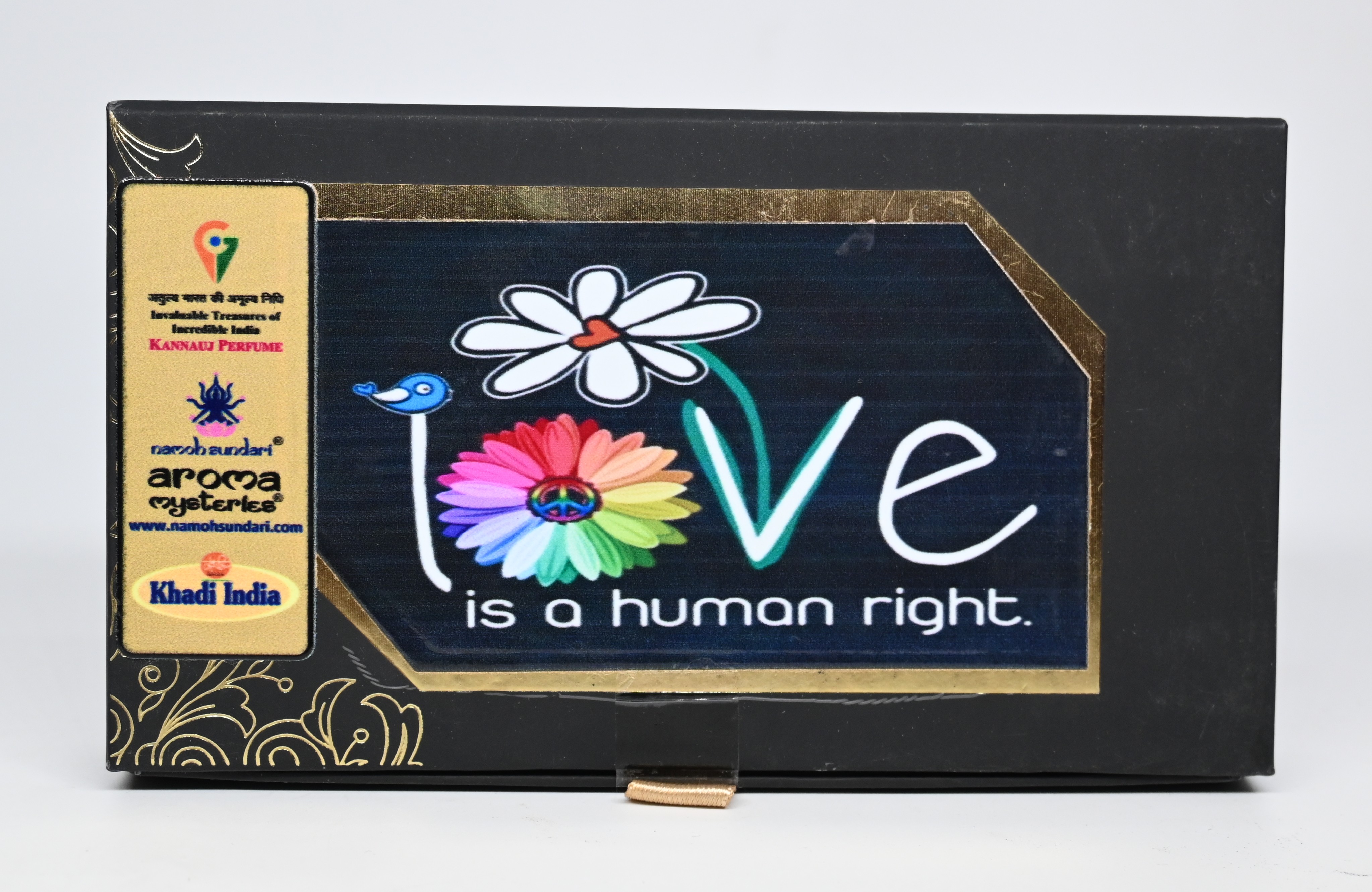 This Khadi India ¿Love Is a Human Right¿ Perfume Gift Set by Namoh Sundari Aroma Mysteries is a beautifully curated fragrance collection celebrating love, equality, and individuality.